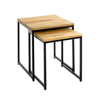 HAKU Mobel Set of 2 End Tables Oak, Black, Solid Wood, Metal Size: W 33/38 cm X H 41/46 D cm, Style: Modern