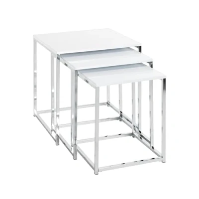 HAKU Mobel Set of 3 End Tables Chrome, White, Mdf, Metal Size: W 29/34/39 cm X H 36/39/42 D cm, Style: Modern