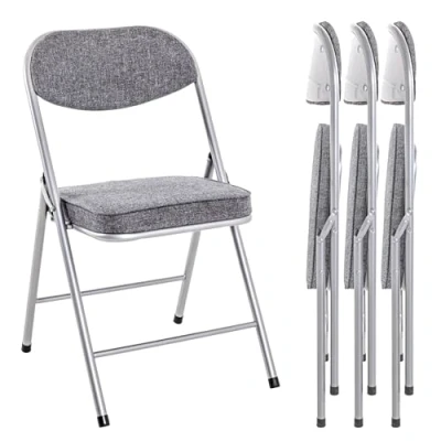 HAKU Mobel Set of 4 Folding Chairs Alu, Grey, Back Upholstered, Seat Steel Size: W 47 cm X H 79 D 53 cm, Style: Modern