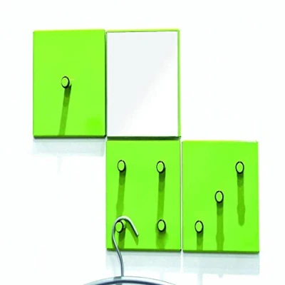 Made of green-painted metal Set consists of 1 wall mirror and coat hook with 1, 3 and 4 coat hooks