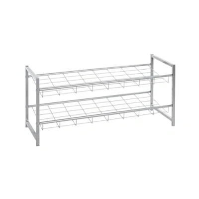 Made of aluminum-coloured steel tube with 2 shelves for approx. 8 pairs of shoes ideal as an insert for the wardrobe stackable with additional shoe racks