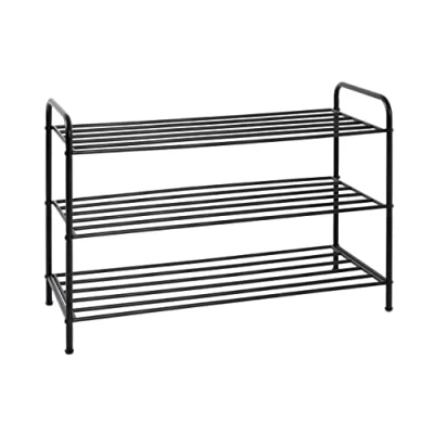Made of black powder-coated steel tube with 3 shelves for approx. 12 pairs of shoes Intermediate height: 7.5/19.5 cm Load capacity: 5 kg per shelf