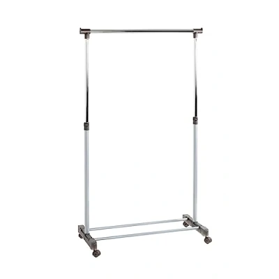 Made of aluminum-coloured steel tube with 1 chrome-plated clothes rail with grey plastic parts Load capacity: 10 kg Height adjustable: from 95 - 170 cm