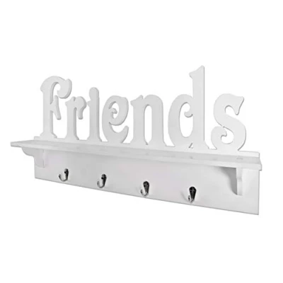 Made of white lacquered MDF with 4 coat hooks in chrome mounted