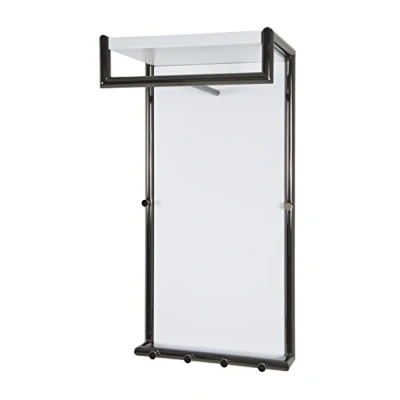 Made of metal in dark chrome Shelf and panel made of white MDF decor with 6 wardrobe buttons with a clothes rail Load capacity: clothes rail 25 kg; hooks 3 kg each
