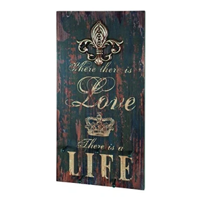 Made of MDF in 3D vintage look with 5 metal coat hooks in black mounted
