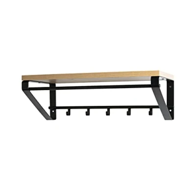 Made of metal painted black MDF melamine decor oak shelf with 5 coat hooks and a clothes rail