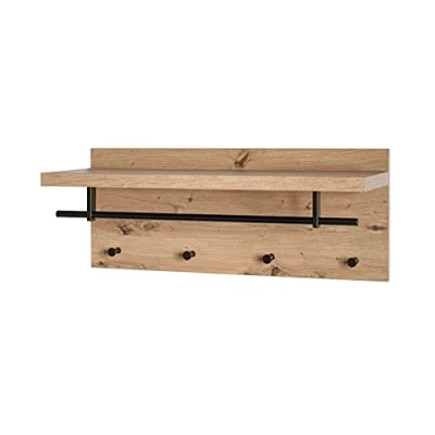 Made from MDF, oak decor Metal clothes rail and coat hook, painted black with hat rack Load capacity: 3 kg per hook