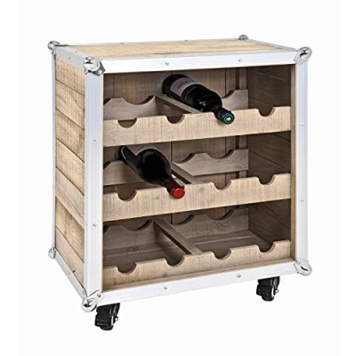 Made from natural solid pine wood Aluminum edges with 3 shelves for 4 bottles each on wheels mounted