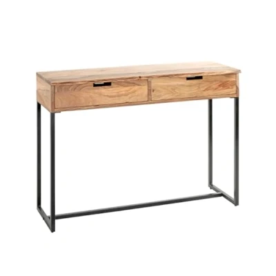 Made of black powder-coated steel tube Natural acacia solid wood body with 2 drawers, inner drawer dimensions: 44.5x26x9.5 cm Top shelf with tree edge Anti-tipping Intermediate height: 60 cm, load capacity: 30 kg