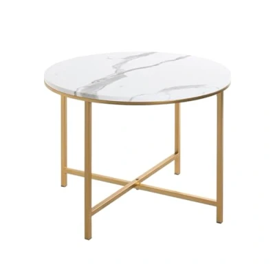HAKU Möbel end table gold, marble look, MDF, metal Size: H 45 cm x Ø 60 cm, Style: Art Deco