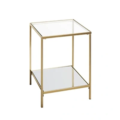 HAKU Möbel End Table Gold, Metal, Tempered Glass, Mirror Size: W 39 cm X H 55 D cm, Style: Art Deco