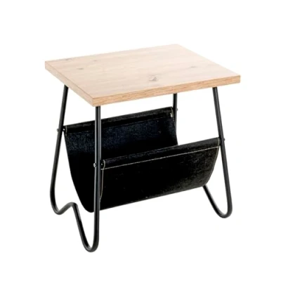 HAKU Möbel End Table Oak, Black, Mdf, Metal, Fabric Size: W 48 cm X H 51 D 40 cm, Style: Modern