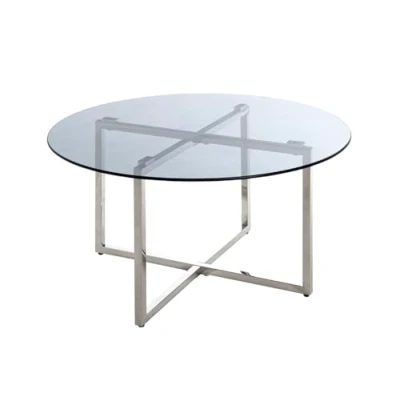HAKU Möbel End Table Stainless Steel, Grey, Tempered Glass 8 mm Size: H 45 cm X Ø 75 cm, Style: Art Deco