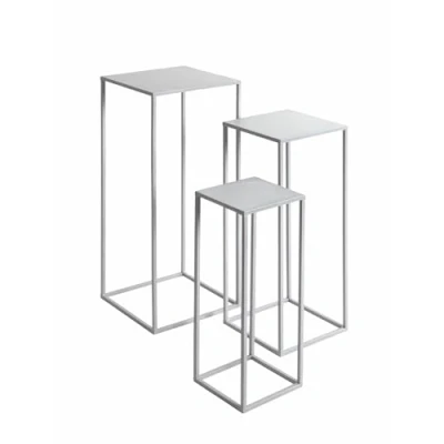 Made of steel tube in powder-coated grey Shelves made of metal in powder-coated grey Shelves: W 18/23/28 x H 50/60/70 x D 18/23/28 cm Suitable for outdoor use in covered areas Load capacity: 5 kg per shelf, assembled