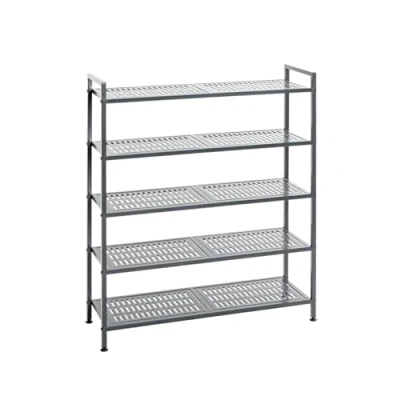 Made from powder-coated anthracite steel tube 5 metal shelves for approx. 20 pairs of shoes Shelf size 70 x 25 cm, intermediate height 17.5 cm Feet are height-adjustable Load capacity: 12 kg per shelf