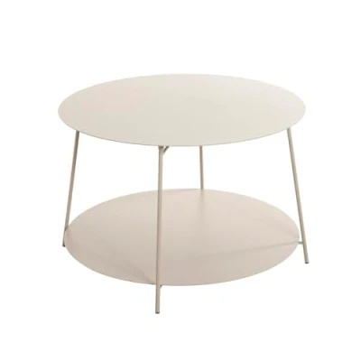 Made of powder-coated steel tube in cashmere grey Metal shelves in cashmere grey powder-coated Intermediate height: 6/34 cm Shelf diameter: 60 cm, total diameter: 65 cm Load capacity: 15 kg per shelf