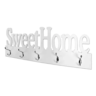 Made of white lacquered MDF with 5 coat hooks in chrome Load capacity: 6 kg per hook mounted