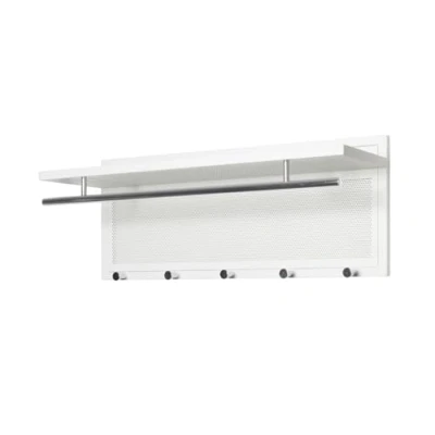 Made of steel tube in white powder-coated Wardrobe rail and 5 knobs made of steel tube in chrome Load capacity: 15 kg