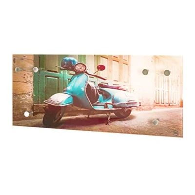 Made of safety glass with print motif (roller) with 6 stainless steel-look hooks Load capacity: 3 kg per hook