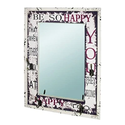 Made from MDF in vintage look with recessed mirror with 4 metal coat hooks in black mounted