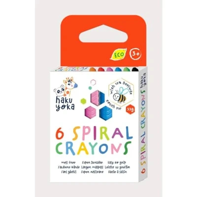 Haku Yoka Spiral Crayons, 6 Colours, Mess Free, Super Durable and Easy to Grip Crayons for Ages 2 years+, Natural Beeswax & Organic Mineral Coloured