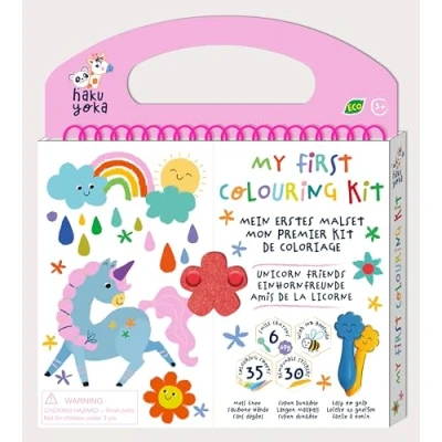 Haku Yoka Unicorn Friends My First Colouring Kit, On The Go Kit with 6 Smile Beeswax Crayons, FSC Certified