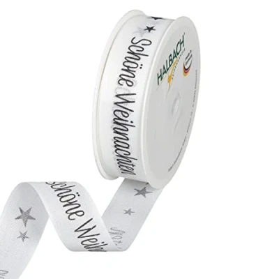 Half silk ribbons gift ribbon: you will receive a roll of gift ribbon printed with the lettering "Schön Weihnachten". Length 18 m, width 25 mm. ✅ CHRISTMAS GIFT RIBBON - The ribbon is ideal for high quality wrapping of Christmas gifts or for decorating Christmas wreaths, paper bags and Christmas trees. Attention to detail: the modern lettering "Schöne Weihnachten" decorates the entire ribbon. Thanks to the trendy colours, you are guaranteed to find perfect Christmas ribbon. ✅ Made in Germany: not only the entire production of the ribbon takes place in Germany, but also our plastic bobbins come from Germany. These are 100% recyclable and very stable. Thanks to the short delivery routes, you make a contribution to the environment. ✅ STRONG AND DURABLE - Our tapes are easy to cut so there are no loose threads or unsightly ends. The bands can be used for a long time as they are made of high quality polyester. The Christmas ribbon is even washable at 30 degrees, you can use it again and again.