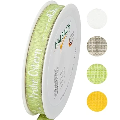 Halbach Seidenbänder Easter Gift Ribbon 15 mm x 20 m Decorative for Lettering "Frohe Ostern" Linen Gifts Colour: Green/White