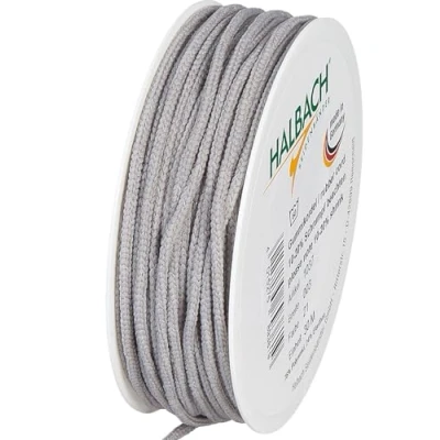 Halbach silk bands rubber cord 3 mm: you will receive a roll of premium rubber cord rolled up on a recycled plastic roll. On the spool there are 30 m elastic cord sold by the metre. Made in Germany quality: our premium elastic band for sewing is 100% made in Germany. We rely on high-quality materials and strict quality controls to provide you with the best rubber band. Universal use: our 3 mm rubber cord for sewing or as an elastic band for bracelets offers a variety of uses - such as a black elastic band as a hat elastic. Traditional: our family business has existed since 1933, which is today Europe's leading producer of ribbons, cords and bows and is now run in the third generation. ♻️ ENVIRONMENTALLY FRIENDLY: Our environmentally friendly approaches extend throughout the manufacturing process. By choosing short delivery routes and local production in Germany, we actively rely on sustainability.