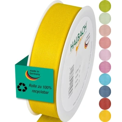 Halbach Seidenbänder Gift Ribbon Wide Width 25 mm Length m Made in Germany Ribbons a Variety of Colours and Widths Perfect for Packaging Decorating, Colour: Honey Yellow
