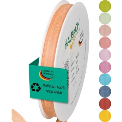 Halbach Seidenbänder Gift Ribbon Width 10 mm Length 25 m Made in Germany Ribbons a Variety of Colours and Widths Perfect for Packaging Decorating, Colour: Apricot