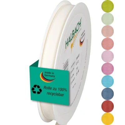 Halbach Seidenbänder Gift Ribbon Width 10 mm Length 25 m Made in Germany Ribbons a Variety of Colours and Widths Perfect for Packaging Decorating, Colour: Cream