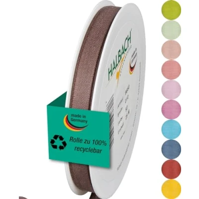 Halbach Seidenbänder Gift Ribbon Width 10 mm Length 25 m Made in Germany Ribbons a Variety of Colours and Widths Perfect for Packaging Decorating, Colour: Dark Brown
