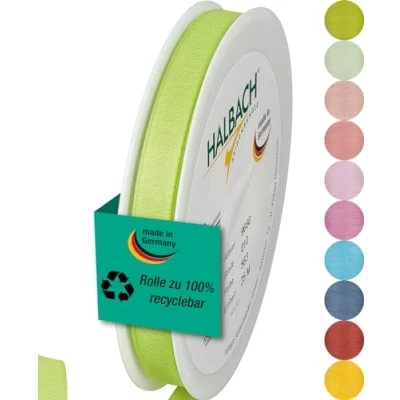 Halbach Seidenbänder Gift Ribbon Width 10 mm Length 25 m Made in Germany Ribbons a Variety of Colours and Widths Perfect for Packaging Decorating, Colour: Light Green