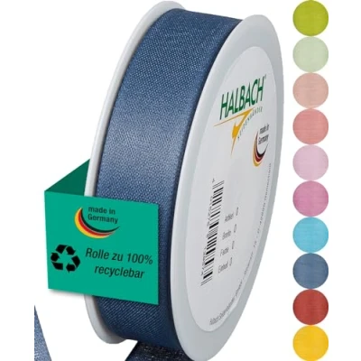 Halbach Seidenbänder Gift Ribbon, Width 25 mm, Length m, Ribbon Made in Germany, Ribbons a Variety of Colours and Widths Perfect for Packaging Decorating, Colour: Denim Blue