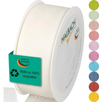 Halbach Seidenbänder Gift Ribbon Width 40 mm Length 25 m Made in Germany Ribbons a Variety of Colours and Widths Perfect for Packaging Decorating, Colour: Cream