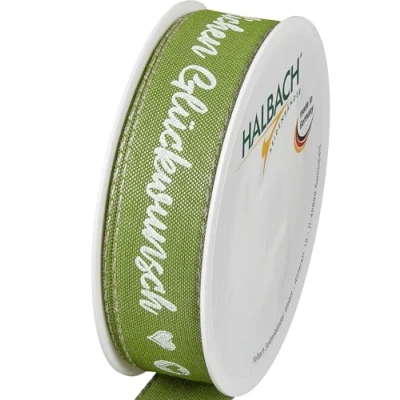 Halbach Seidenbänder Herzlichen Glückwunsch Gift Ribbon Width 25 mm Length 18 m Birthday Gift Ribbon for Birthday Decoration Colour: Moss Green/White