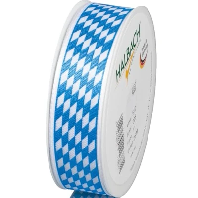 Halbach Seidenbänder Oktoberfest Decorative Ribbon Width: 25 mm Length: m Colour: Blue/White Gift Bavaria for Bavarian Table Decoration or Gifts