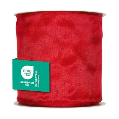 Halbach Seidenbänder Premium Gift Ribbon with Wired Edge, Width 100 mm, Length 25 m, Oeko Tex Certified Ribbon, Taffeta Made in Germany, Colour: Red