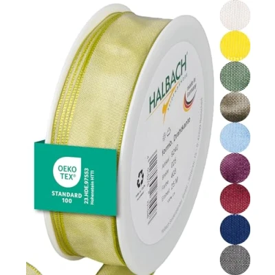 Halbach Seidenbänder Premium Gift Ribbon with Wired Edge, Width 25 mm, Length m, Oeko Tex 100 Certified Ribbon, Taffeta Made in Germany, Colour: Light Green
