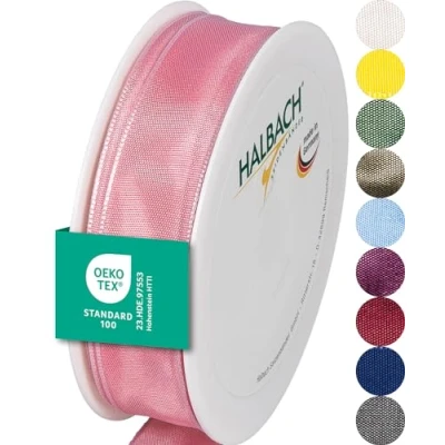 Halbach Seidenbänder Premium Gift Ribbon with Wired Edge Width 25 mm Length m Oeko Tex 100 Certified Taffeta Made in Germany, Colour: Flamingo