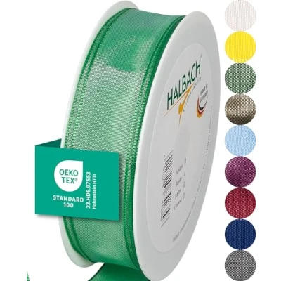 Halbach Seidenbänder Premium Gift Ribbon with Wired Edge Width 25 mm Length m Oeko Tex 100 Certified Taffeta Made in Germany, Colour: Lush Mint