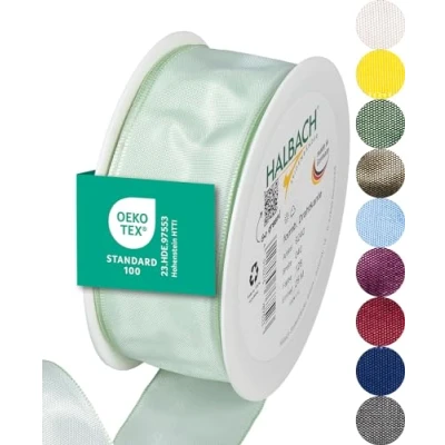 Halbach Seidenbänder Premium Gift Ribbon with Wired Edge, Width 40 mm, Length 25 m, Oeko Tex 100 Certified Ribbon, Taffeta Made in Germany, Colour: Light Mint