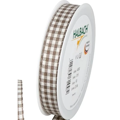 Halbach Seidenbänder Premium Vichy Checked Gift Ribbon (Dark Brown) Width 15 mm Length 25 m Made in Germany Many Colours