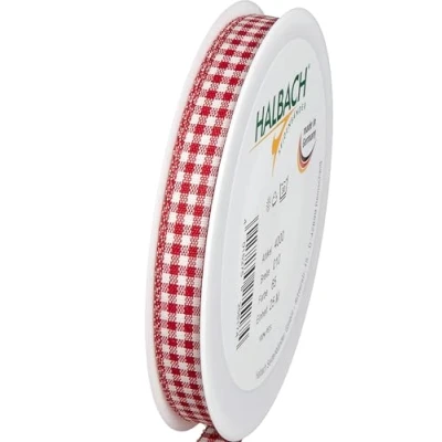 Halbach Seidenbänder Premium Vichy Checked Gift Ribbon (Red) Width 10 mm Length 25 m Made in Germany Many Colours