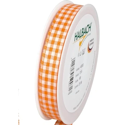 Halbach Seidenbänder Vichy 15mm Orange Check Ribbon for Gift Wrapping, Celebration