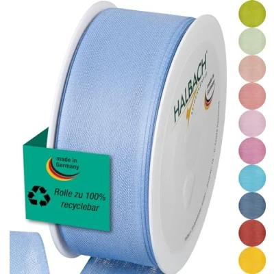 Halbach Seidenbänder Wide Gift Ribbon Width 40 mm Length 25 m Made in Germany Ribbons a Variety of Colours and Widths Perfect for Packaging Decorating, Colour: Sky Blue