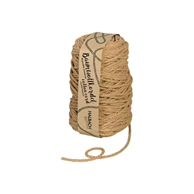 Semi-pure silk ribbons cotton cord – the cotton cord from Halbach silk ribbons is made from recycled cotton fibres (90% cotton, 10% other fibres). Top price performance – 80 metres of the 5 mm thick cotton cord are rolled up on each cone. This offers you enough material - even for your large projects. Beautiful colours: In addition to the classic natural variant, you can choose your favourite colours from 14 other trendy colours. Robust and durable: you can easily wash our cotton cord at 30 degrees. In addition, the cord is suitable for outdoor use, as it does not stain or fade. Tear-resistant quality: whether in dry or wet condition, our cord always remains stable and tear-resistant - therefore it can also be used for DIY projects where the cord is stressed.