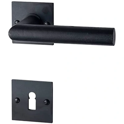 High quality door handle made from strong and durable black steel The handle set with rosette BB is ideal for indoor use - room doors The surface of the handle set is already oiled, the door fitting should be re-oiled 1-2 years Rosette: 52 x 52 x 3 mm, holes: deadlock (BB), door thickness: 50 mm, square pin: 8/8.5 mm loose Box contents: Davos handle set, black PZ, 2x door handles on rosette, 2x rosette PZ black steel, Weight: 2.49783742846 Pounds, Manufacturer: HALCÖ